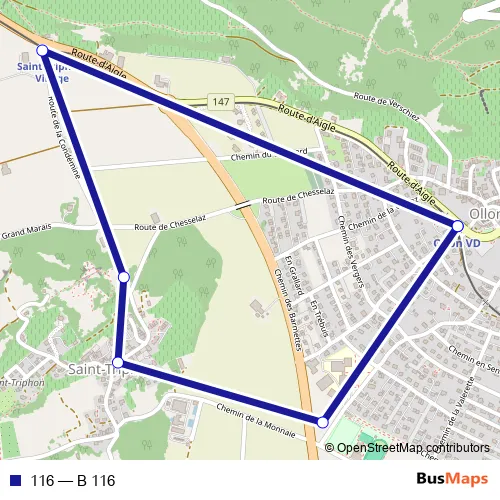 See why over 2 million users trust and consider busmaps.com as the best public transport website. busmaps gives you Aigle Buses suggested routes, real-time bus tracker, line route maps in Aigle, and helps to find the closest 116 bus stops near you. No internet available? Download an offline PDF map and bus schedule for the 116 bus to take on your trip.