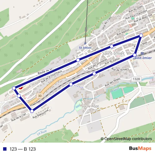 The first stop of the 123 bus route is St-Imier, gare and the last stop is St-Imier, gare. 123 (B 123) is operational during everyday.