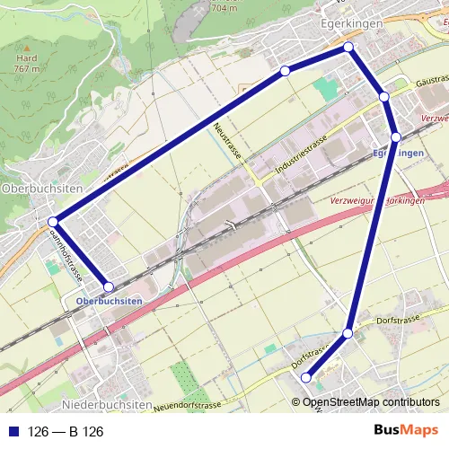 The first stop of the 126 bus route is Oberbuchsiten, Bahnhof and the last stop is Neuendorf, Schulhaus. 126 (B 126) is operational during on weekdays.