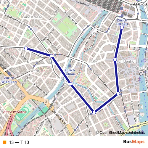 See why over 2 million users trust and consider busmaps.com as the best public transport website. busmaps gives you Zuerich Trams suggested routes, real-time bus tracker, line route maps in Zuerich, and helps to find the closest 13 tram stops near you. No internet available? Download an offline PDF map and bus schedule for the 13 tram to take on your trip.