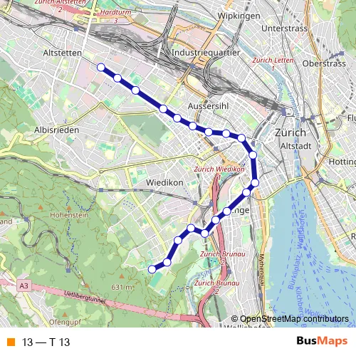 See why over 2 million users trust and consider busmaps.com as the best public transport website. busmaps gives you Zuerich Trams suggested routes, real-time bus tracker, line route maps in Zuerich, and helps to find the closest 13 tram stops near you. No internet available? Download an offline PDF map and bus schedule for the 13 tram to take on your trip.