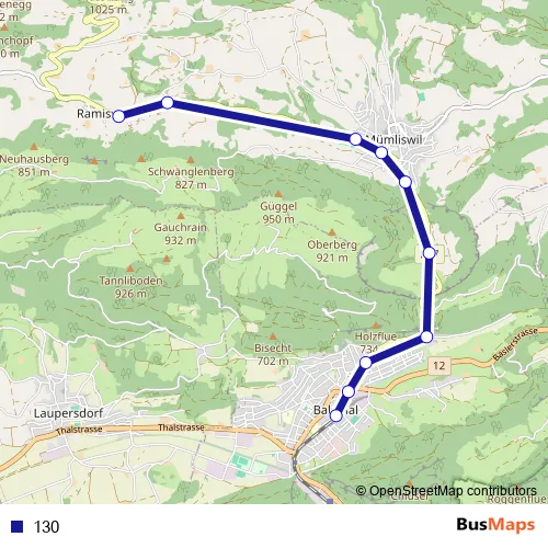 The first stop of the 130 bus route is Balsthal, Bahnhof and the last stop is Ramiswil, Dorf. 130 is operational during everyday.