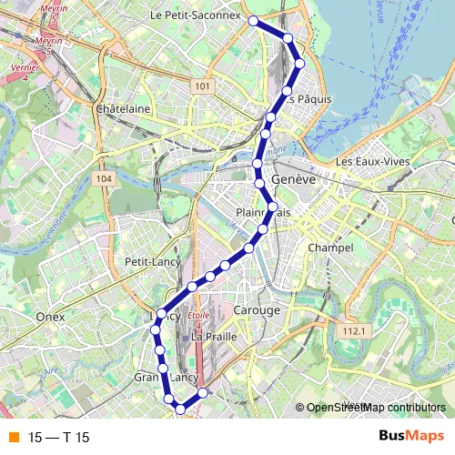 See why over 2 million users trust and consider busmaps.com as the best public transport website. busmaps gives you Geneve Trams suggested routes, real-time bus tracker, line route maps in Geneve, and helps to find the closest 15 tram stops near you. No internet available? Download an offline PDF map and bus schedule for the 15 tram to take on your trip.