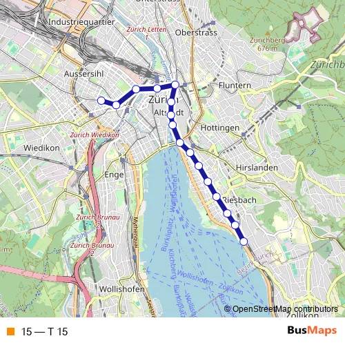 See why over 2 million users trust and consider busmaps.com as the best public transport website. busmaps gives you Zuerich Trams suggested routes, real-time bus tracker, line route maps in Zuerich, and helps to find the closest 15 tram stops near you. No internet available? Download an offline PDF map and bus schedule for the 15 tram to take on your trip.