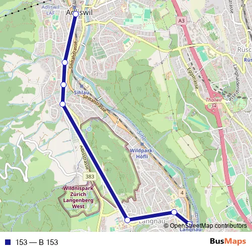 The first stop of the 153 bus route is Adliswil, Büchel and the last stop is Adliswil, Bahnhof. 153 (B 153) is operational during everyday.