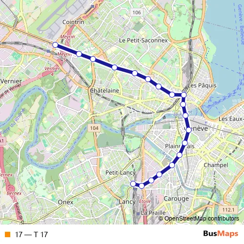 See why over 2 million users trust and consider busmaps.com as the best public transport website. busmaps gives you Geneve Trams suggested routes, real-time bus tracker, line route maps in Geneve, and helps to find the closest 17 tram stops near you. No internet available? Download an offline PDF map and bus schedule for the 17 tram to take on your trip.