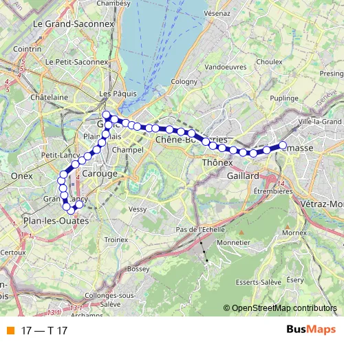 See why over 2 million users trust and consider busmaps.com as the best public transport website. busmaps gives you Geneve Trams suggested routes, real-time bus tracker, line route maps in Geneve, and helps to find the closest 17 tram stops near you. No internet available? Download an offline PDF map and bus schedule for the 17 tram to take on your trip.