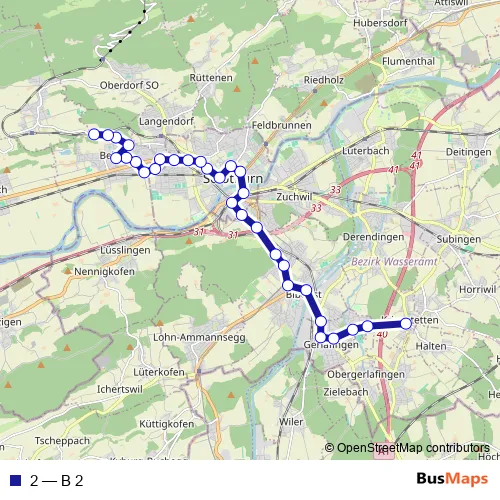 See why over 2 million users trust and consider busmaps.com as the best public transport website. busmaps gives you Solothurn Buses suggested routes, real-time bus tracker, line route maps in Solothurn, and helps to find the closest 2 bus stops near you. No internet available? Download an offline PDF map and bus schedule for the 2 bus to take on your trip.