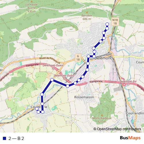 Bus 2 - B 2 in Delemont: Stops & Timetable