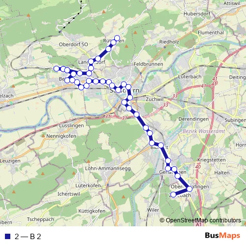 See why over 2 million users trust and consider busmaps.com as the best public transport website. busmaps gives you Solothurn Buses suggested routes, real-time bus tracker, line route maps in Solothurn, and helps to find the closest 2 bus stops near you. No internet available? Download an offline PDF map and bus schedule for the 2 bus to take on your trip.