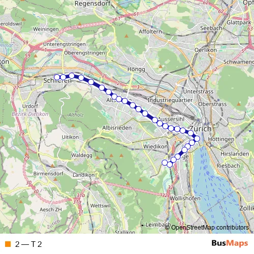 See why over 2 million users trust and consider busmaps.com as the best public transport website. busmaps gives you Zuerich Trams suggested routes, real-time bus tracker, line route maps in Zuerich, and helps to find the closest 2 tram stops near you. No internet available? Download an offline PDF map and bus schedule for the 2 tram to take on your trip.