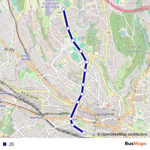 See why over 2 million users trust and consider busmaps.com as the best public transport website. busmaps gives you Lausanne Buses suggested routes, real-time bus tracker, line route maps in Lausanne, and helps to find the closest 20 bus stops near you. No internet available? Download an offline PDF map and bus schedule for the 20 bus to take on your trip.