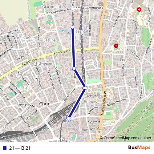 See why over 2 million users trust and consider busmaps.com as the best public transport website. busmaps gives you Chur Buses suggested routes, real-time bus tracker, line route maps in Chur, and helps to find the closest 21 bus stops near you. No internet available? Download an offline PDF map and bus schedule for the 21 bus to take on your trip.
