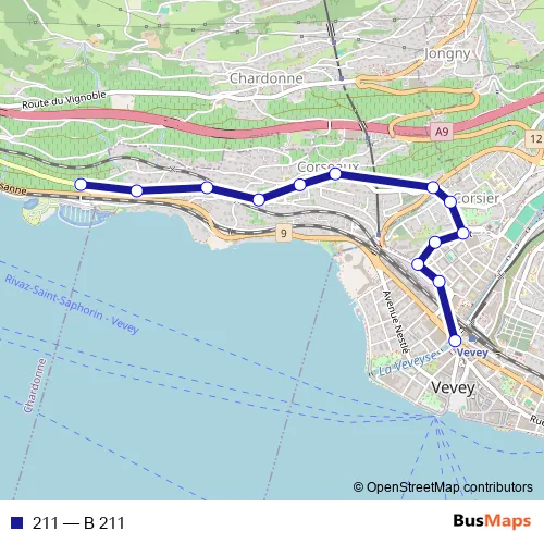The first stop of the 211 bus route is Vevey, gare and the last stop is Corseaux, Gonelles. 211 (B 211) is operational during on weekdays.