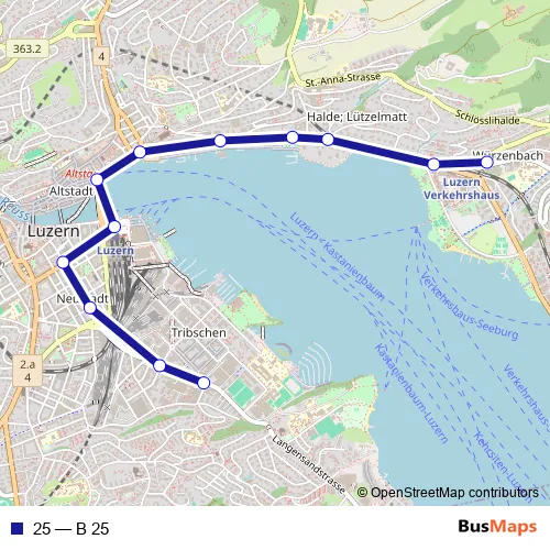 See why over 2 million users trust and consider busmaps.com as the best public transport website. busmaps gives you Luzern Buses suggested routes, real-time bus tracker, line route maps in Luzern, and helps to find the closest 25 bus stops near you. No internet available? Download an offline PDF map and bus schedule for the 25 bus to take on your trip.