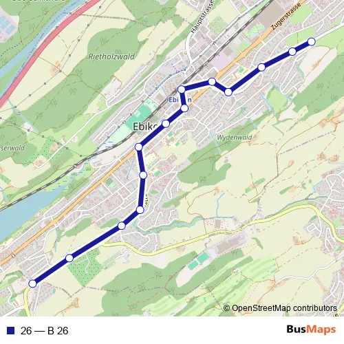 The first stop of the 26 bus route is Luzern, Unterlöchli and the last stop is Ebikon, Ottigenbühl. 26 (B 26) is operational during everyday.