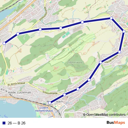 See why over 2 million users trust and consider busmaps.com as the best public transport website. busmaps gives you Luzern Buses suggested routes, real-time bus tracker, line route maps in Luzern, and helps to find the closest 26 bus stops near you. No internet available? Download an offline PDF map and bus schedule for the 26 bus to take on your trip.