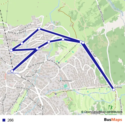 The first stop of the 266 bus route is Verbier, Savoleyres and the last stop is Verbier, Savoleyres. 266 is operational during everyday.