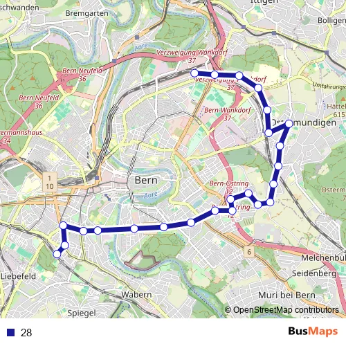 See why over 2 million users trust and consider busmaps.com as the best public transport website. busmaps gives you Bern Buses suggested routes, real-time bus tracker, line route maps in Bern, and helps to find the closest 28 bus stops near you. No internet available? Download an offline PDF map and bus schedule for the 28 bus to take on your trip.