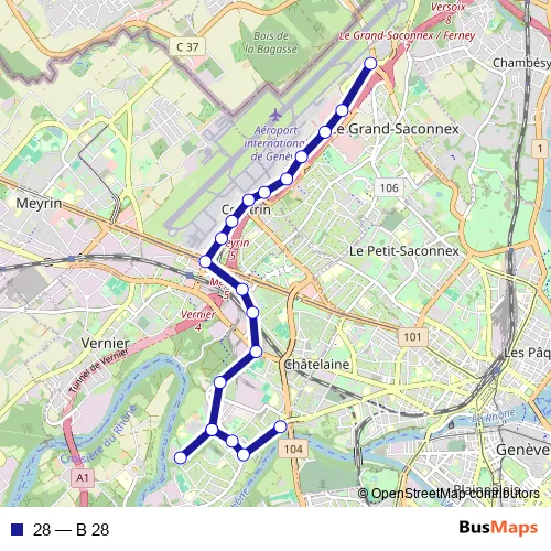 See why over 2 million users trust and consider busmaps.com as the best public transport website. busmaps gives you Geneve Buses suggested routes, real-time bus tracker, line route maps in Geneve, and helps to find the closest 28 bus stops near you. No internet available? Download an offline PDF map and bus schedule for the 28 bus to take on your trip.