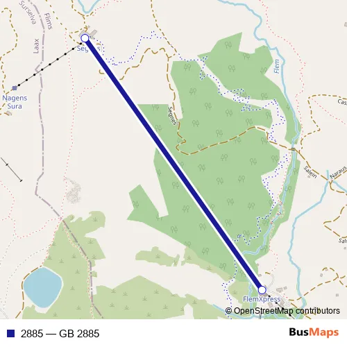 The first stop of the 2885 cable-car route is Segnes and the last stop is Startgels. 2885 (GB 2885) is operational during everyday.