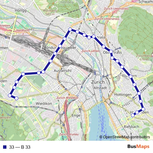 See why over 2 million users trust and consider busmaps.com as the best public transport website. busmaps gives you Zuerich Buses suggested routes, real-time bus tracker, line route maps in Zuerich, and helps to find the closest 33 bus stops near you. No internet available? Download an offline PDF map and bus schedule for the 33 bus to take on your trip.