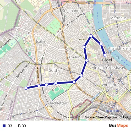 See why over 2 million users trust and consider busmaps.com as the best public transport website. busmaps gives you Basel Buses suggested routes, real-time bus tracker, line route maps in Basel, and helps to find the closest 33 bus stops near you. No internet available? Download an offline PDF map and bus schedule for the 33 bus to take on your trip.