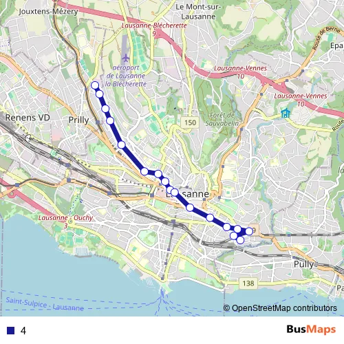 See why over 2 million users trust and consider busmaps.com as the best public transport website. busmaps gives you Lausanne Buses suggested routes, real-time bus tracker, line route maps in Lausanne, and helps to find the closest 4 bus stops near you. No internet available? Download an offline PDF map and bus schedule for the 4 bus to take on your trip.