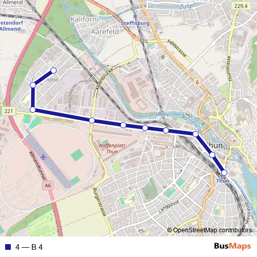 See why over 2 million users trust and consider busmaps.com as the best public transport website. busmaps gives you Thun Buses suggested routes, real-time bus tracker, line route maps in Thun, and helps to find the closest 4 bus stops near you. No internet available? Download an offline PDF map and bus schedule for the 4 bus to take on your trip.