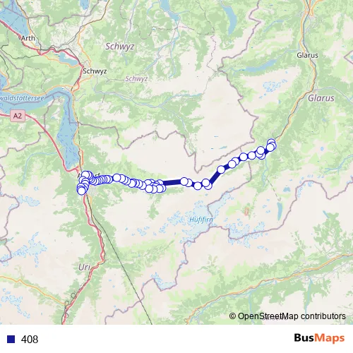The first stop of the 408 bus route is Urigen and the last stop is Attinghausen, Seilbahn. 408 is operational during everyday.