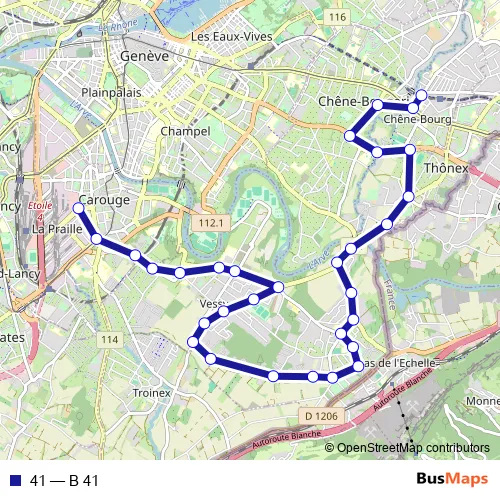 See why over 2 million users trust and consider busmaps.com as the best public transport website. busmaps gives you Geneve Buses suggested routes, real-time bus tracker, line route maps in Geneve, and helps to find the closest 41 bus stops near you. No internet available? Download an offline PDF map and bus schedule for the 41 bus to take on your trip.