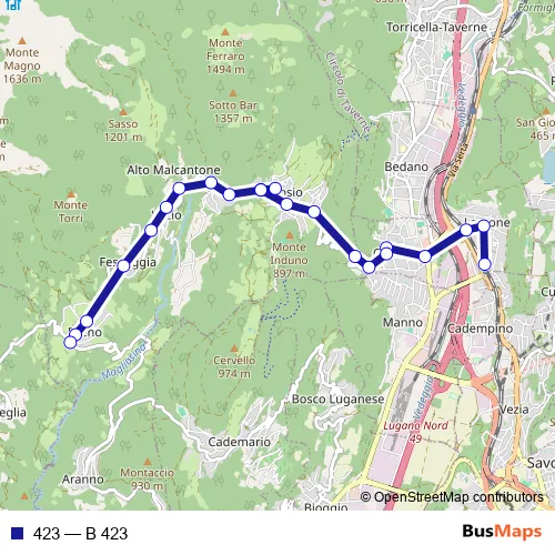 See why over 2 million users trust and consider busmaps.com as the best public transport website. busmaps gives you Lugano Buses suggested routes, real-time bus tracker, line route maps in Lugano, and helps to find the closest 423 bus stops near you. No internet available? Download an offline PDF map and bus schedule for the 423 bus to take on your trip.