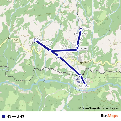 The first stop of the 43 bus route is Molinis, Dorf and the last stop is St. Peter Fatschel, Hochwang. 43 (B 43) is operational during on weekends.