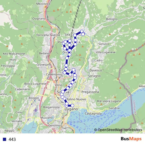 See why over 2 million users trust and consider busmaps.com as the best public transport website. busmaps gives you Lugano Buses suggested routes, real-time bus tracker, line route maps in Lugano, and helps to find the closest 443 bus stops near you. No internet available? Download an offline PDF map and bus schedule for the 443 bus to take on your trip.