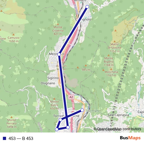 The first stop of the 453 bus route is Taverne, Superiore and the last stop is Camignolo, Scuola Media. 453 (B 453) is operational during on weekdays.