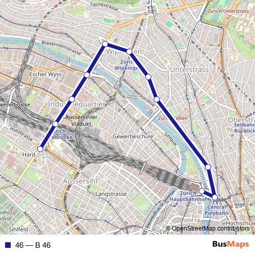 See why over 2 million users trust and consider busmaps.com as the best public transport website. busmaps gives you Zuerich Buses suggested routes, real-time bus tracker, line route maps in Zuerich, and helps to find the closest 46 bus stops near you. No internet available? Download an offline PDF map and bus schedule for the 46 bus to take on your trip.