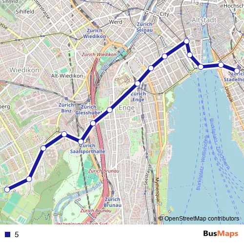 See why over 2 million users trust and consider busmaps.com as the best public transport website. busmaps gives you Zuerich Trams suggested routes, real-time bus tracker, line route maps in Zuerich, and helps to find the closest 5 tram stops near you. No internet available? Download an offline PDF map and bus schedule for the 5 tram to take on your trip.
