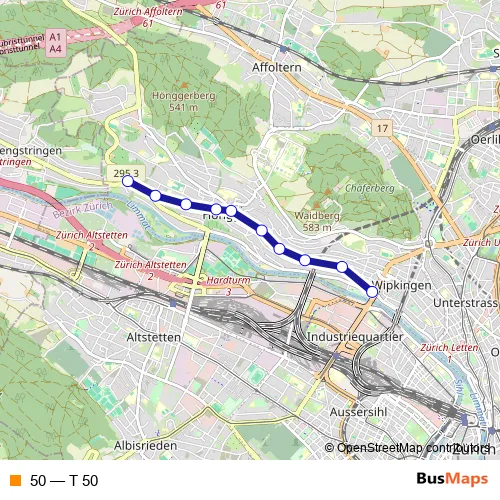 See why over 2 million users trust and consider busmaps.com as the best public transport website. busmaps gives you Zuerich Trams suggested routes, real-time bus tracker, line route maps in Zuerich, and helps to find the closest 50 tram stops near you. No internet available? Download an offline PDF map and bus schedule for the 50 tram to take on your trip.