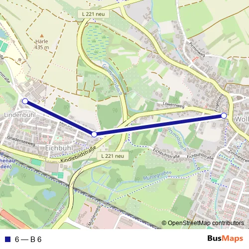 The first stop of the 6 bus route is Reichenau (Bd), ZfP Reichenau and the last stop is Wollmatingen, Kindlebildstr.. 6 (B 6) is operational during everyday.