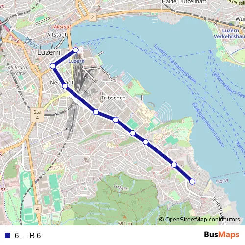 See why over 2 million users trust and consider busmaps.com as the best public transport website. busmaps gives you Luzern Buses suggested routes, real-time bus tracker, line route maps in Luzern, and helps to find the closest 6 bus stops near you. No internet available? Download an offline PDF map and bus schedule for the 6 bus to take on your trip.