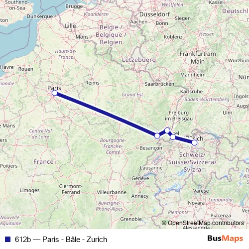 Click here to view the nearest 612b - Paris - Bâle - Zurich rail stop.