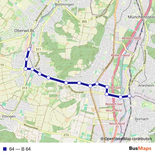 Bus 64 - B 64 in Arlesheim: Stops & Timetable
