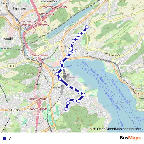 See why over 2 million users trust and consider busmaps.com as the best public transport website. busmaps gives you Luzern Buses suggested routes, real-time bus tracker, line route maps in Luzern, and helps to find the closest 7 bus stops near you. No internet available? Download an offline PDF map and bus schedule for the 7 bus to take on your trip.