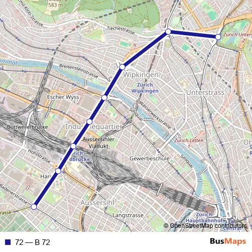 See why over 2 million users trust and consider busmaps.com as the best public transport website. busmaps gives you Zuerich Buses suggested routes, real-time bus tracker, line route maps in Zuerich, and helps to find the closest 72 bus stops near you. No internet available? Download an offline PDF map and bus schedule for the 72 bus to take on your trip.