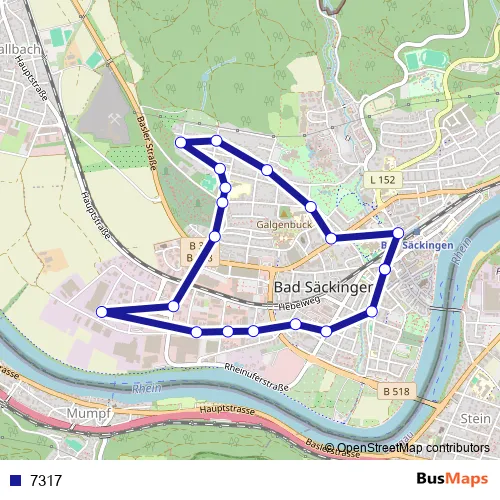The first stop of the 7317 bus route is Bad Säckingen, Lohgerbe and the last stop is Bad Säckingen, Lohgerbe. 7317 is operational during everyday.