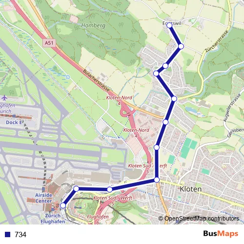 Bus 734 in Zuerich: Stops & Timetable