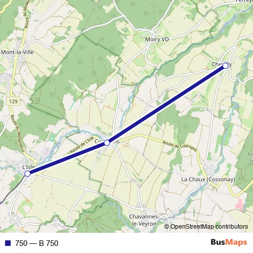 The first stop of the 750 bus route is Chevilly, Fontaines and the last stop is L'Isle, gare. 750 (B 750) is operational during everyday.