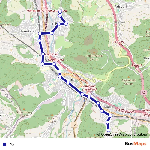 The first stop of the 76 bus route is Lausen, Furlen and the last stop is Füllinsdorf, Schnäggeberg. 76 is operational during everyday.