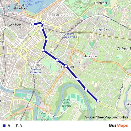 See why over 2 million users trust and consider busmaps.com as the best public transport website. busmaps gives you Geneve Buses suggested routes, real-time bus tracker, line route maps in Geneve, and helps to find the closest 8 bus stops near you. No internet available? Download an offline PDF map and bus schedule for the 8 bus to take on your trip.
