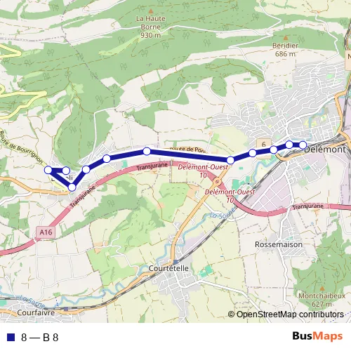 See why over 2 million users trust and consider busmaps.com as the best public transport website. busmaps gives you Delemont Buses suggested routes, real-time bus tracker, line route maps in Delemont, and helps to find the closest 8 bus stops near you. No internet available? Download an offline PDF map and bus schedule for the 8 bus to take on your trip.